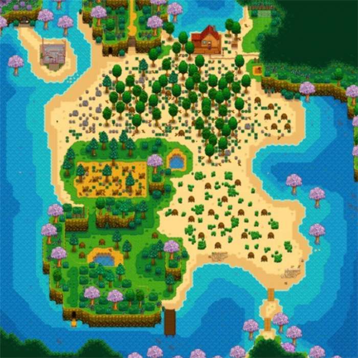沙滩农场是六张地图中耕地面积较大的(约5000格),尽管耕地分布不规律,但提供了更大的种植空间。
