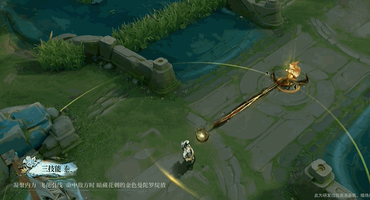 凝聚内力,飞花引线。命中敌方目标时,金色曼陀罗绽放,暗藏嗜血花刺;命中队友时,蓝色曼陀罗花灿然盛开。