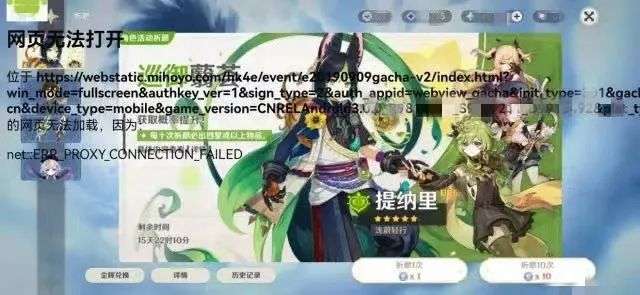第三步:回到游戏祈愿界面,点击历史记录,出现错误页面复制链接即可