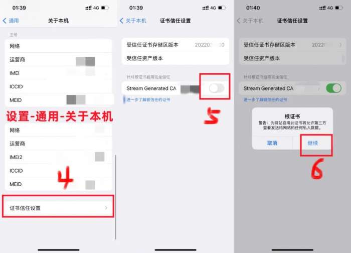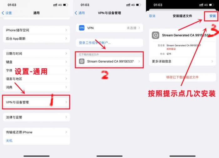 打开 手机 设置>通用>VPN与设备管理>安装证书