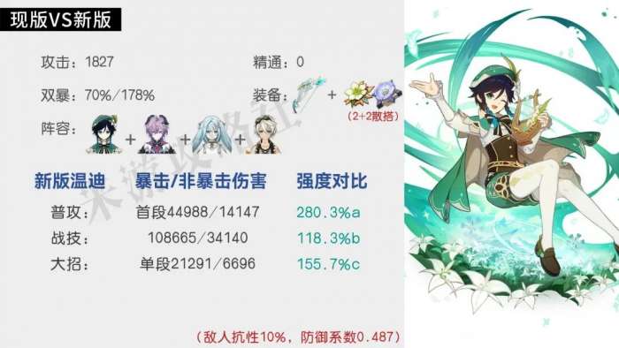 那么,新版本的温迪辅助能力和输出能力各自提升多少,对比万叶表现如何?
