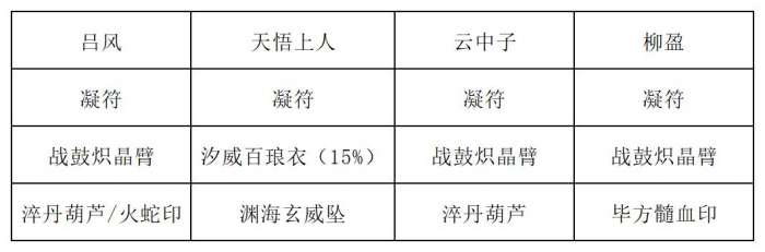 第一回合:云中子打出百转叠浪诀、三清化水符和玄冰化刃符,吕风复制玄冰化刃符并打出,柳盈打出玄冰神破、玄冰九变和化刃符。