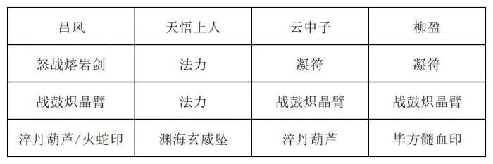 第六回合:云中子打出百转叠浪诀,吕风复制百转叠浪诀,天悟上人打出三清化水符,云中子打出三清化水符,天悟上人打出五行化水咒和断水龙威,吕风打出复制的百转叠浪诀,柳盈打出玄冰神破和玄冰九变,接着就可以输出了。