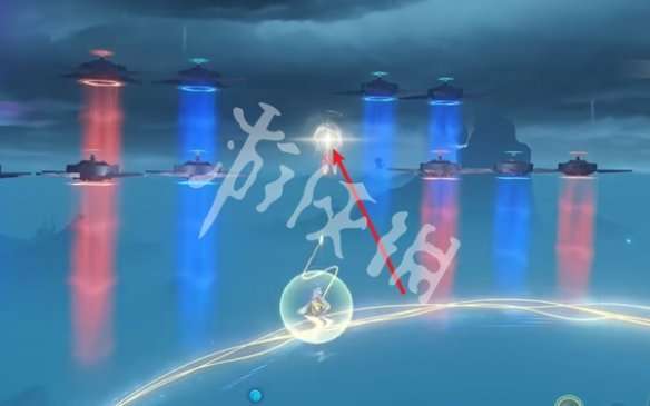 在图中到达指定位置后,拉动箭头处的月灵,可以将无人机聚集在一起。