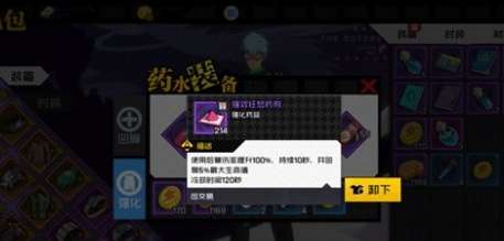 而在强化药品中则建议小伙伴优先选择“强效狂怒药剂”,这可是一个不可多得的药品,百分百提高暴伤率,而且还能恢复大量生命值。