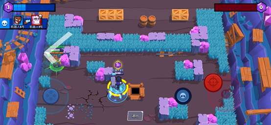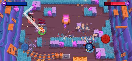 如在硬石矿井这张地图中,就有很多适合的角度。游戏开局时,可以选择先走中路打一波输出。如图中,利用墙壁的弹射延长攻击距离,更加容易打到人。
