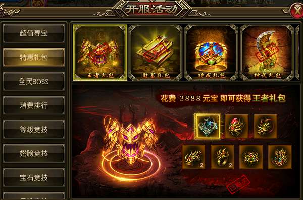 1.开服活动-特惠礼包超低价购买各类进阶材料