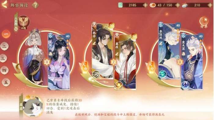 由于沙盘演略类似于结界突破(阴阳师)和奇岩试炼场(幻书启世录),但与后二者不同的是沙盘演略无法进行操作——故而目前实测最舒服的阵容是多高速群攻 + 辅助大周后 & 袁天罡。
