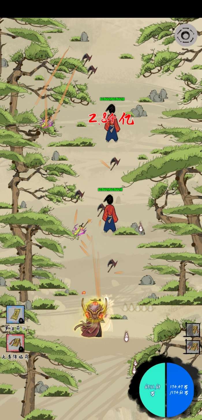 打怪:贴上罗汉符,盾没了继续贴。招出天尊,几秒结束,心魔雷劫一样