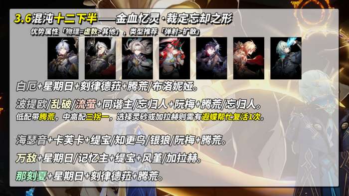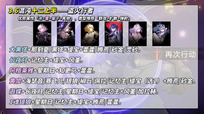 优势属性「物理=虚数>其他」,类型推荐「弹射>扩散」,敌方无特殊抗性。 【对敌策略】 第1波:除了击破队要注意一下甜猿泰山的锁韧性条,优先处理,其余体系正常打即可。至于金人勾魂使的标记+控制,除了带解控免控角色,也没啥操作方面的应对策略了。