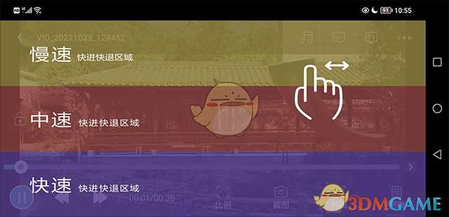 3、在视频播放当中滑动屏幕任意一处就可以调整速度了,轻轻划过是慢速,快速划过是中速和快速。