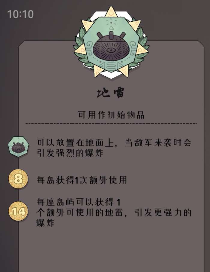 注意:不要放在岸边,船上岸会把地雷引爆。