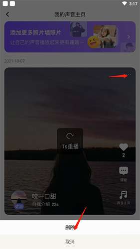 软件提交 专题合集 热门手游打开ME语音APP,进入个人主页后点击“全部声音”选项,找到需要删除的声音文件,点击其右侧的“三点”按钮,在弹出的菜单中选择“删除”即可完成操作。此方法适用于清理个人主页中的历史语音记录或误录内容。