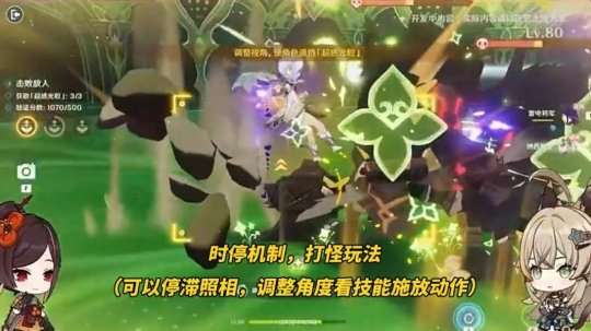 【弘辩的溢神效应】须弥学者又来找你测试了,此次进行了些许改良。测试场地内,将会自动收集能量触发时停,对敌人造成伤害。但要我说,这个时停机制是一次非常好的拍照机会,期间整个画面停滞,包括原本动效的技能特效,我们可以自由调节位置和方向观赏!