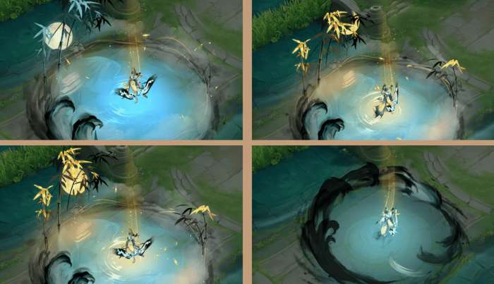 若与一技能同时释放,法阵内将浮现硕大竹影,随风摇曳,增强双技能联动的视觉表现。