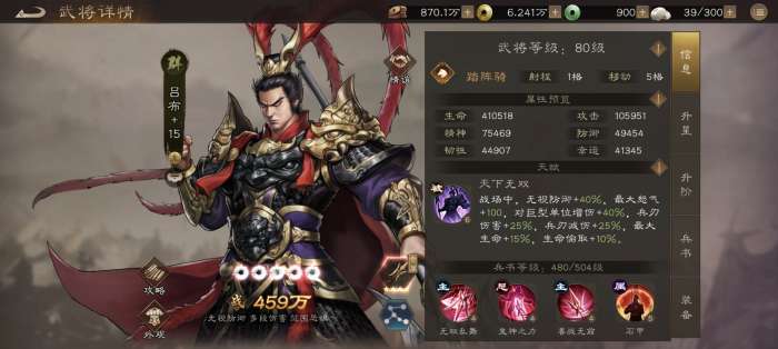 核心优势:无视防御(高额)、越战最强单体,击杀回怒(需4星神兵“方天画戟”解锁)。