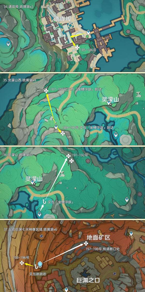 重要提示:1.关于标记:鱼钩标记为「跳跳岩」/路标,方便寻路,请善用路标提示;