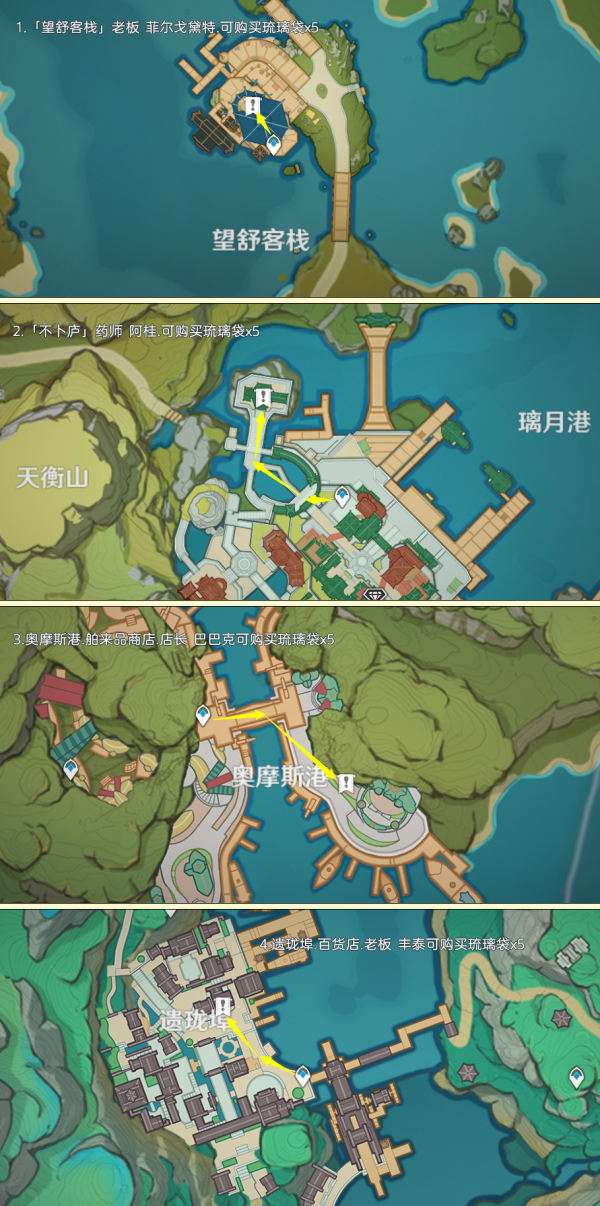 当前版本有4位NPC有出售琉璃袋