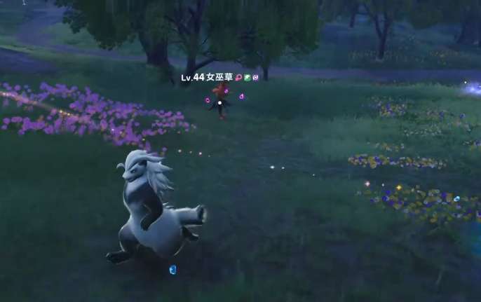 接着玩家可以沿着这个区域继续向前,走到相对比较平整的树林边缘之后,就可以看到幽幽焰,这个精灵也是火系的,所以身上会散发着大量的火焰,在黑暗中是非常亮眼的,这个玩家可以继续向前进入到森林中,在这里可以看到走调草,并且这个区域中会有很多只玩家只需要靠近捕捉即可。