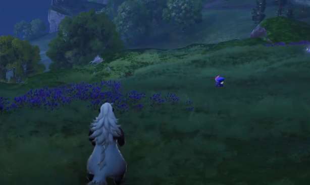 在螳螂的左侧会出现几块石头,在石头附近出现的是幽爪镰,这是淬刀螳螂的一阶状态,捕捉完成之后,玩家就可以沿着当前的区域向左,在这里可以捕捉到最后一个宠物女巫草,在女巫草出现的地方周围会有大片的紫色花朵。