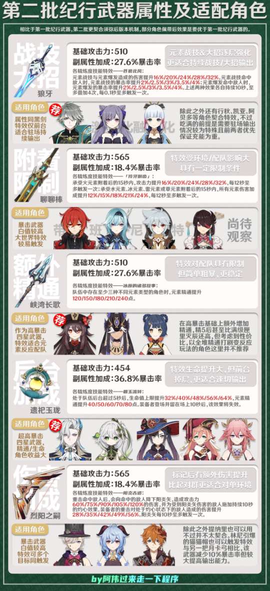 第二批武器相比第一批更适合须弥以后的角色加成机制,尤其是枪和法器。