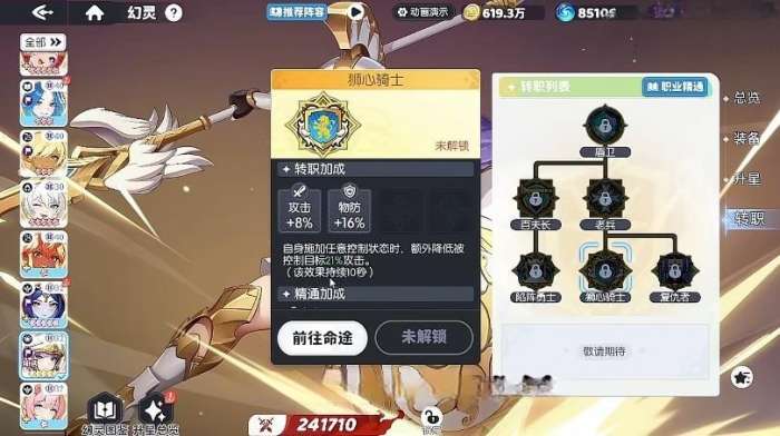 狮心骑士是兼顾输出与坦度的均衡型选择。该职业提供8%攻击加成与16%物理防御加成,特别适配半坦克定位的角色。其机制亮点在于施放控制技能时可同步削弱敌方输出能力,显著提升团战容错率与持续承伤稳定性,属于高泛用性的保命向转职方案。