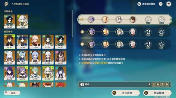 试用角色有温迪和草神,温迪是一个辅c,能聚怪减抗增伤,适合第2轮和第3轮。输出够不建议带,切角色和放技能占用时间。