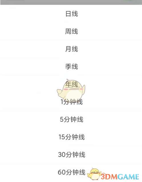 6、软件一共提供了10个可供选择的选项,分别是日线,周线,月线,季线,年线,1分钟线,5分钟线,15分钟线,30分钟线,60分钟线,大家可以根据自身需要选择设置。