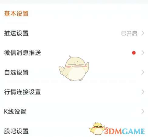 3、在设置界面中,找到K线设置选项,点击进入K线设置界面。