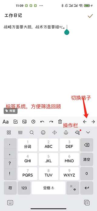 软件提交 专题合集 热门手游反思日记app功能怎么使用,主界面可直观查看每天的日记,左右滑动切换日期,可自定义编辑格式,拖动排序,点击修改内容,通过操作栏添加标签、图片等,使用右侧按钮切换格子。