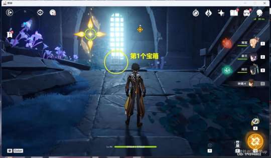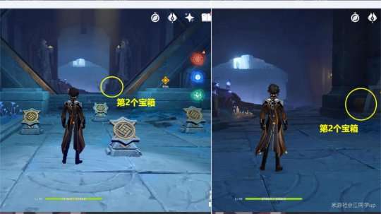 3、完成上面解密打开门进去后,里面右边雕像下面就是第2个宝箱位置