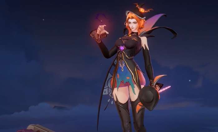 2、这款肤设计上融合了经典的哥特风格,通过南瓜手杖、尖顶帽和小蝙蝠等元素的搭配,营造出一种神秘奇幻的氛围。