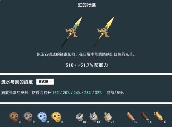 匣里灭辰(精通)、西风枪(充能拐)、虹的行迹(防御);