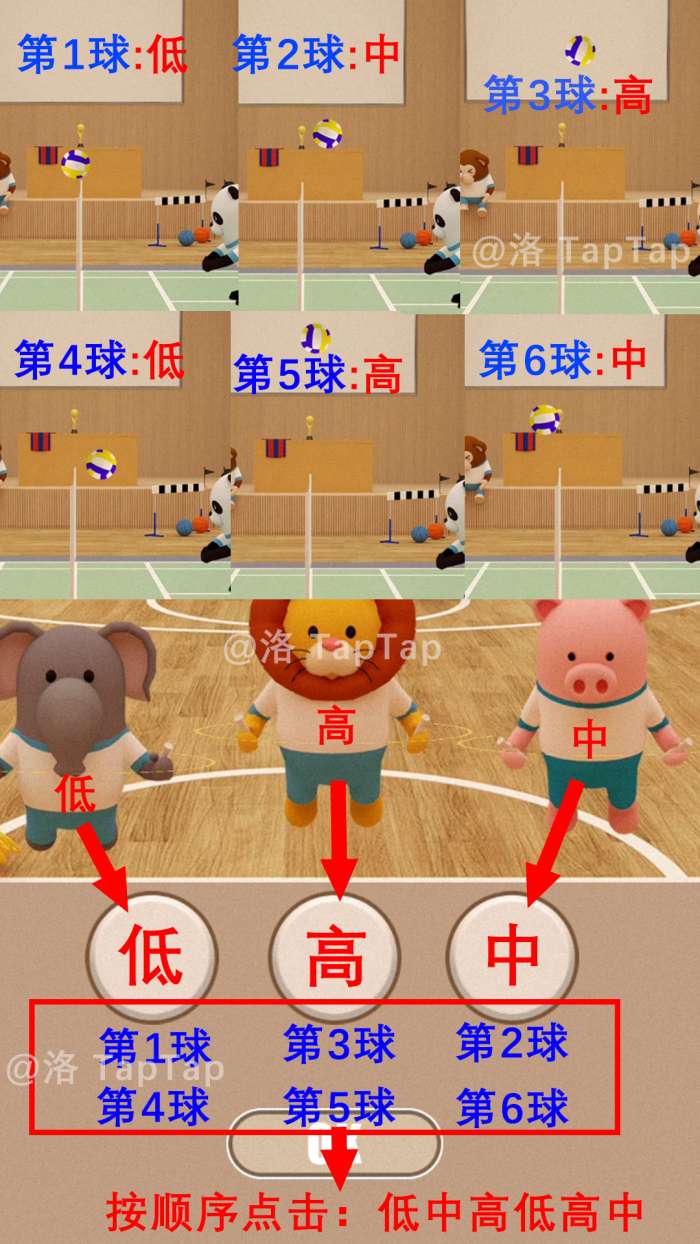 结合排球场两位同学排球每次飞起的高度与篮球场三位同学跳绳的高度,按【左右中左中右】依次点击机关,获得【足球】