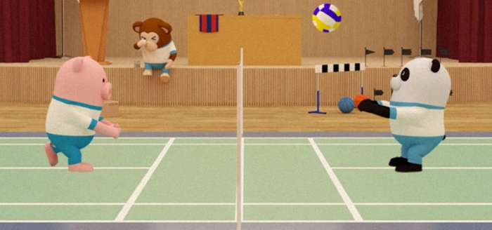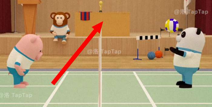 将【排球】交给排球场的熊猫同学,观察他和猪猪同学打排球时球飞起的高度,在【任务5】中会用到