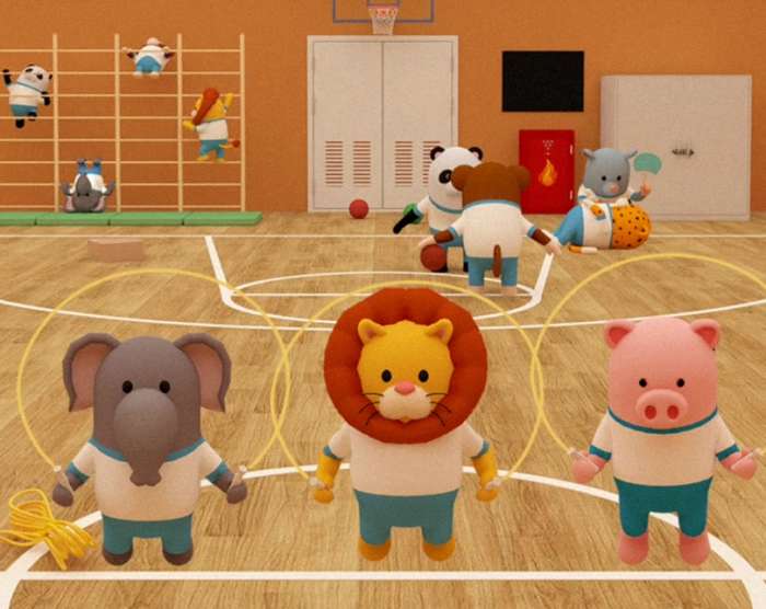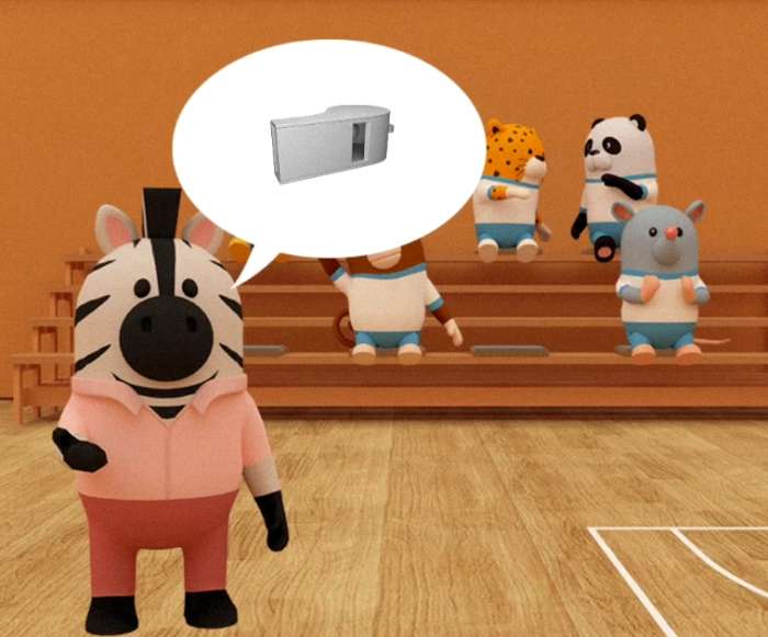 把【哨子】交给斑马老师后,他开心地带领学生们做起了健身操,记下它们的动作,在【任务3】中要用到