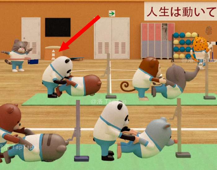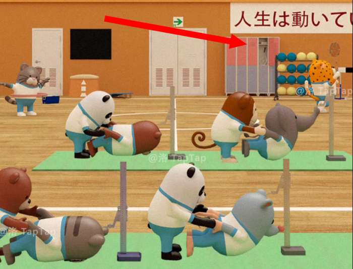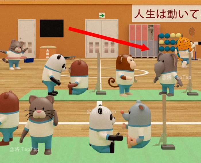 点击体育馆大门,结合【任务9】中累瘫在地同学的号码牌、平衡木上同学们的朝向,以及上方的箭头对应图标,调整大门上的机关;打开大门,结束本章节
