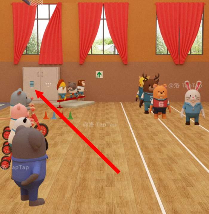 点击拉伸活动场所后方的小门,使用【门把手】,进入器材室