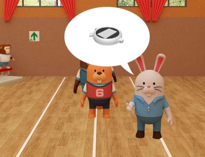 将【秒表】交给田径场的兔子老师,只听它一声令下,同学们开始了往返跳!最后都累趴下了。。记住同学们的号码牌和位置分布,在【任务10】中将会用到
