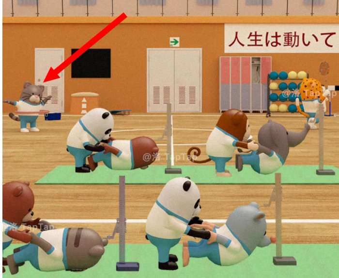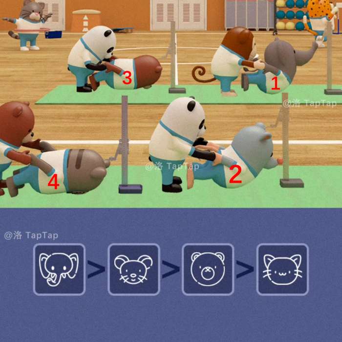 将【拉伸器材】交给花猫同学,它们开始了拉伸活动,最后各位同学也是完成了拉伸,记住它们的拉伸成绩,在【任务4】中会用到(哎不对,大象同学你怎么回事!!)