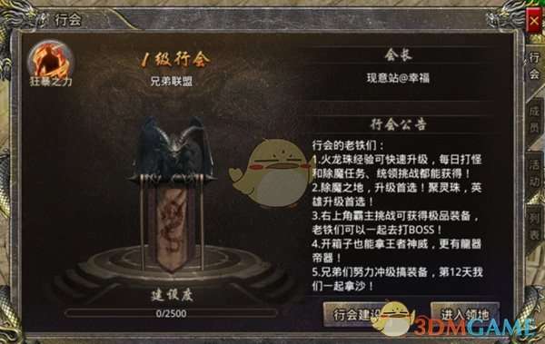相信许多传奇玩家都知道,行会是游戏中最重要的社交系统。在《热血合击》等级到达50级就可以开启行会,玩家可自己创建行会,也可加入别人的行会。加入行会后不仅可以跟志同道合的朋友组队刷怪,还有很多行会活动可以参加哦!