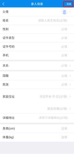 3、填写家人信息,点击右上角完成按钮。