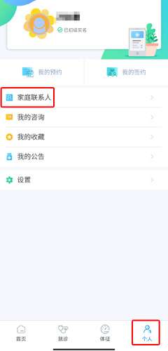 1、用户在个人页面中点击家庭联系人按钮;