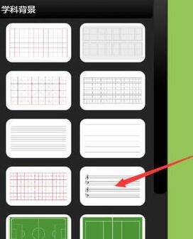 单击学科工具,可以根据学科特点设置背景,比如说音乐课,可以设置五线谱背景。