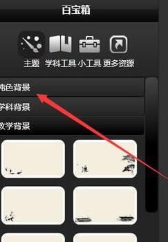 单击主题按钮,底部出现几个选项:纯色背景、学科背景、教学背景,还有本地图片,可以自定义背景。我们可以先单击纯色背景试一试效果。