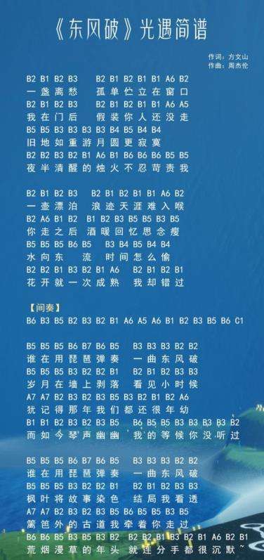 3、《东风破》光遇简谱