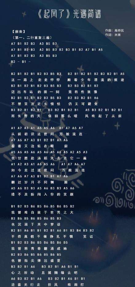 9、《起风了》光遇简谱