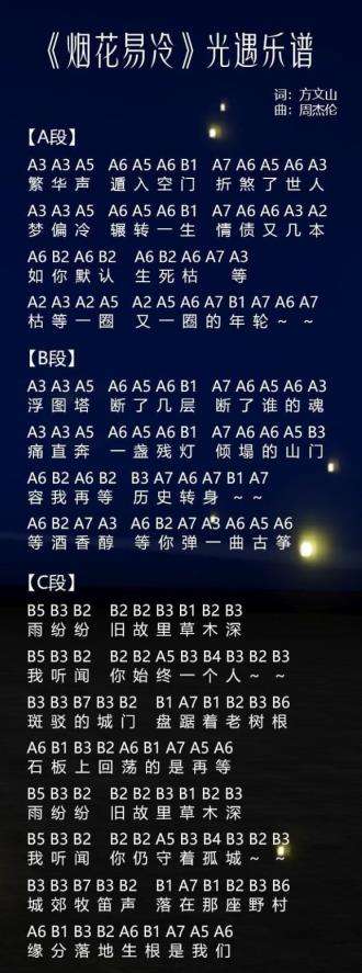 2、《烟花易冷》光遇乐谱