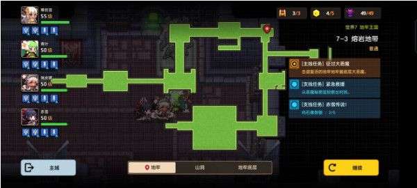 在打恶魔封印支线关之前先来7-5上图图示位置开启地牢美食支线关卡