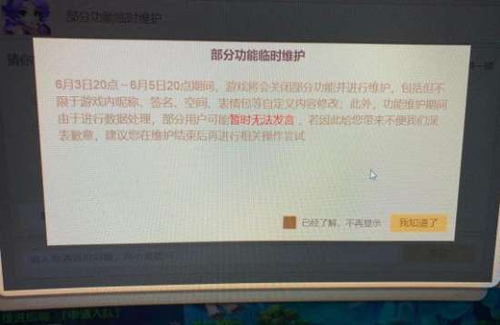 在6月3日20点到6月5日20点期间,昵称、签名、空间、表情包等内容不能进行更改。